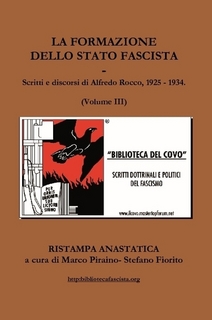 Terzo volume degli “scritti e discorsi di Alfredo Rocco”, in “La Formazione dello Stato Fascista” l’illustre “Guardasigilli” incaricato da Mussolini espone e commenta i “pilastri” giuridici attraverso i quali l’agnostico Stato-liberale, a partire dalla seconda metà degli anni Venti, venne progressivamente trasformato dal P.N.F. in STATO TOTALITARIO FASCISTA, a mezzo di apposite leggi e col preciso fine di realizzare la propria ideologia rivoluzionaria. Questa raccolta mostra la centralità del ruolo di Rocco nella costruzione dello “Stato Nuovo”, che spicca quale personaggio di primissimo piano nell’ambito ideologico del Fascismo.