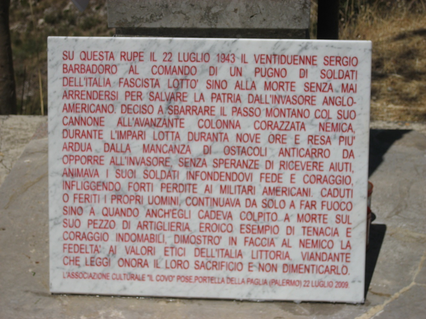 IlCovo commemora con una lapide l’eroe Sergio Barbadoro che difese Palermo nel 1943 : http://ilcovo.mastertopforum.net/posa-della-lapide-all-eroe-barbadoro-foto-vt1191.html