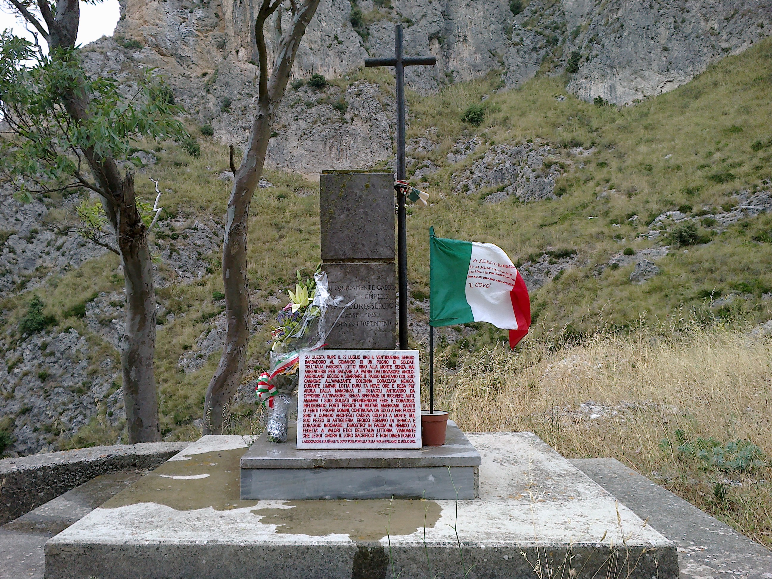 Anche quest’anno, come avviene ogni 22 luglio dal 2009, IlCovo ha onorato la memoria di Sergio Barbadoro portando un mazzo di fiori sul monumento eretto a Portella della Paglia (in provincia di Palermo) li dove morì lottando per difendere la Patria dagli invasori anglo-americani nel 1943.