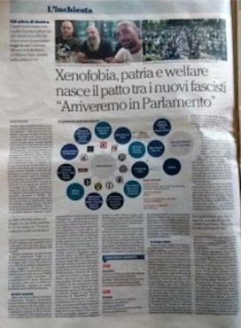 La “Strategia della tensione” in funzione di supporto al dominio plutocratico globale di Washington (non a caso sede del Fondo Monetario Internazionale), non è affatto una novità né è mai stata abbandonata dal Governo statunitense, come abbiamo più volte già sottolineato (qui, qui, qui, qui)! Ed in concomitanza con l’attentato “neo-nazista” tedesco, sempre per puro “caso”, nella pseudo-repubblica Italy-ota, accade un altro fatto per nulla eccezionale nell’era della psicosi antifascista montante (meglio sarebbe dire montata!). Il solertissimo giornale “La Repubblica”, da par suo, “scova” e denuncia un “raduno carbonaro” degli immancabili “neo-nazisti de noantri”! Chi sono? Cosa fanno? Ovviamente, si tratta di un “pericolosissimo concerto” messo in scena da un gruppo riconducibile a Casa Pound Italia (C.P.I), nel quale si esalta l’organizzazione delle S.S. nazional-socialiste, nonché una tanto astratta quanto inventata “Europa sognata da Hitler”.