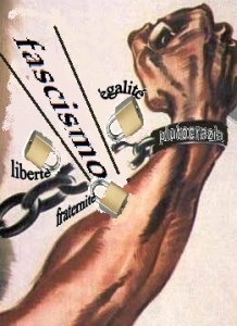 Dunque, siamo fascisti perché, proprio alla luce degli evidenti sviluppi storici di cui abbiamo detto, coerentemente col pensiero ideologico fascista di cui abbiamo scritto, rifiutiamo tutte le capziose ed oziose distinzioni interpretative elaborate nei vari ambiti dall’antifascismo dominante, tendenti solamente a far confusione sull’argomento, a cominciare dal campo storiografico che, ad esempio, col De Felice, parlava di un “fascismo movimento” contrapposto ad un “fascismo regime”, cui a sua volta si sarebbe opposto un “fascismo repubblicano”. Invece il Fascismo, diversamente dalle altre teorie politiche, fonda se stesso su dei principi spirituali immutabili, sempre proclamati con coerenza fin dagli albori della sua storia, (così come affermava che i mezzi per raggiungerli potevano tranquillamente cambiare, secondo quanto ribadito in modo chiaro e netto dagli stessi teorici fascisti), finalizzati al perseguimento del “Bene comune” della Collettività Nazionale, da intendersi simultaneamente come “morale, politico ed economico”. Tale principio esclude l’assolutizzazione del bene dei singoli individui concepiti quali atomi astratti rispetto alla società (concezione tipica del liberalismo!), così come rigetta la collettivizzazione che si appella alla tutela esclusiva di singole classi o categorie (la teoria espressa dal social-comunismo!). Secondo tale modello statuale, l’Autorità della legge, relativizza gli interessi particolari senza sopprimerli, ma subordinandoli a quelli dell’intero popolo, organicamente inteso in senso nazionale. Proprio in ossequio a tale logica politica, privilegiante il bene comune, vanno ricondotte le espropriazioni attuate dallo Stato fascista, ad esempio in relazione alla Bonifica Integrale. In questo senso, secondo la Dottrina fascista, proprio in vista del medesimo Bene Comune, potrebbe, di contro, ugualmente essere necessario “privatizzare”. Ma ciò che conta davvero capire, una volta per tutte, è che tali eventuali “privatizzazioni” od “espropriazioni”, secondo la concezione espressa dal Fascismo, non è possibile che siano lasciate all’arbitrio del singolo individuo o di un particolare gruppo d’interesse economico settoriale. Esse, infatti, restano sempre e comunque subordinate all’interesse generale dello Stato fascista, che rappresenta il Popolo e che controlla l’economia, affinché obbedisca sempre ed in tutti i casi al medesimo principio del “Bene Comune”. Quindi, piuttosto che definire male la questione mettendo l’accento sulla lotta al capitalismo o al proletariato, il pensiero politico fascista, ponendosi sul piano dello Spirito, rimarca il fatto che è l’individualismo materialista a costituire la fonte dei mali del mondo (qui), e quindi stigmatizza ugualmente liberal-capitalismo e social-comunismo, che basano se stessi sulla fallace analisi “meccanico-materiale” dei problemi, riducendo il tutto a mera questione economica.